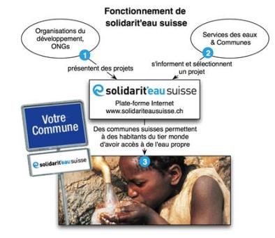 L'opération solidarit'eau suisse fait office de plateforme d'échange, où les communes intéressées trouveront aisément des projets d'adduction d'eau qu'elles sont à même de soutenir. Vous disposez de deux manières de procéder pour participer à solidarit'eau et offrir ainsi l'accès à l'eau potable à des personnes qui en sont dépourvues : soutenir un projet ou établir un partenariat.