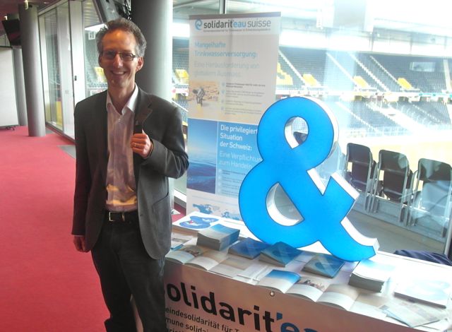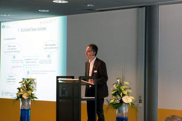 Sébastien Apothéloz, chef d’eauservice, distributeur d’eau de la ville de Lausanne en a profité pour présenter l’engagement de Lausanne dans le partenariat solidaire avec la Mauritanie qu’elle mène à travers l’initiative Solidarit’eau Suisse. Il a de plus arboré le pins en forme de « & » bleu distribué par la Direction du développement et de la coopération (DDC) et symbolisant l’engagement les acteurs de l’eau pour la coopération et la solidarité internationale.