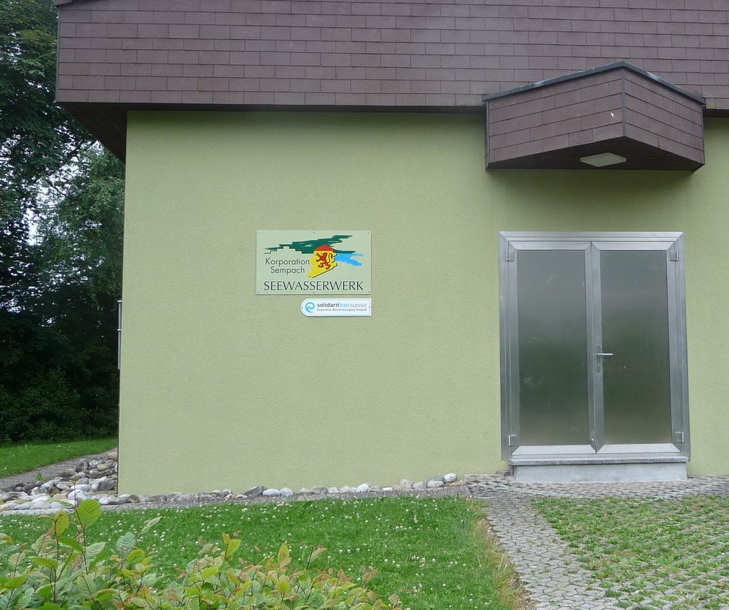 < Sempach's Wasserwerk ziert das solidarit'eau suisse Label